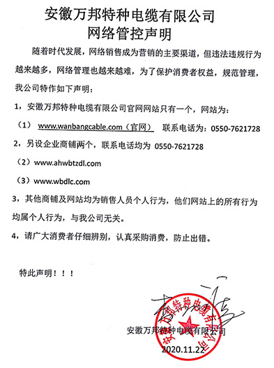 鄭重聲明:安徽萬邦特種電纜有限公司官方網(wǎng)站為:www_wanbangcable_com.scozt.cn,除此之外無任何子網(wǎng)站或合作網(wǎng)站,其余均為假冒偽劣。電話:0550-7621728 13485756353 地 址:安徽省天長市滁州高新技術(shù)產(chǎn)業(yè)開發(fā)區(qū)經(jīng)四路29號(hào)